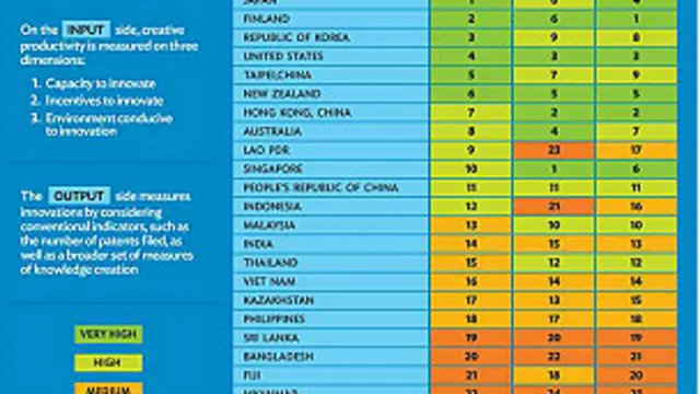 Tài liệu công bố bởi <link type="page"><caption> ADB</caption><url href="http://www.adb.org/features/creative-productivity-index" platform="highweb"/></link> hôm 12/9/2014 nói họ muốn các nhà hoạch định chính sách có một công cụ để đo lường "sự tiến bộ trong quá trình bồi dưỡng tính sách tạo và sáng chế ở 22 nền kinh tế châu Á".
