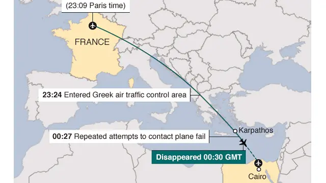 Chiếc máy bay biến mất khỏi màn hình radar của Hy Lạp và Ai Cập, dù trước đo không phát tín hiệu khẩn cấp.